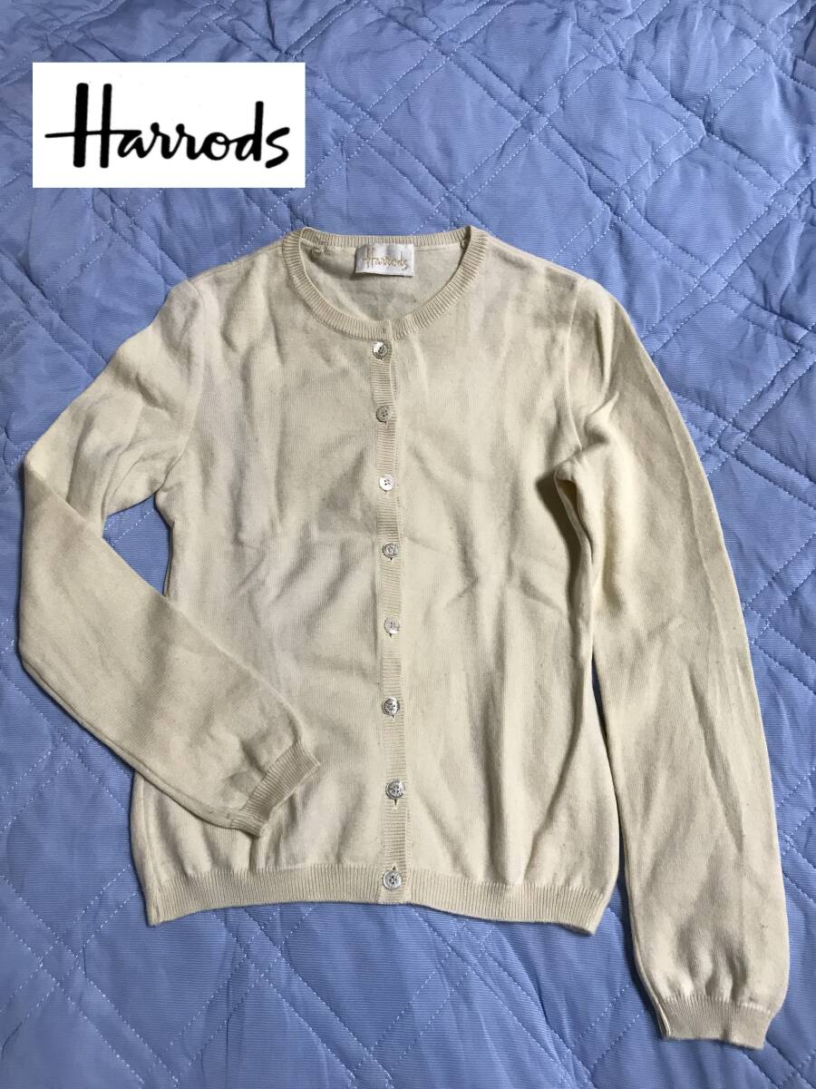 - ハロッズ 白色 毛90%カシミヤ10%カーディガン t158