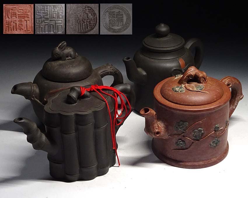 > 緑屋s■ 中国古玩 紫泥 朱泥 急須 在銘/紅娟 他 4点 まとめて 唐物 時代物 煎茶道具 bnit/9-266/30-9#80