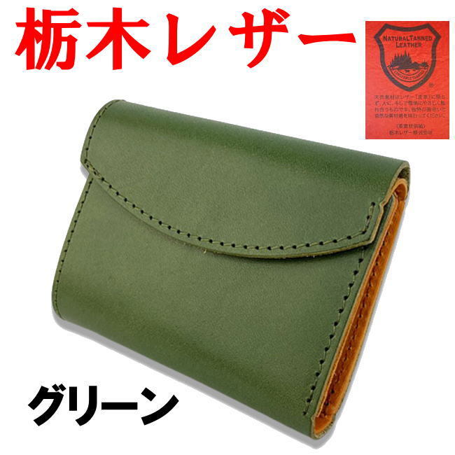 - グリーン 緑 栃木レザー 姫路レザー 財布 三折 ミニウォレット 285