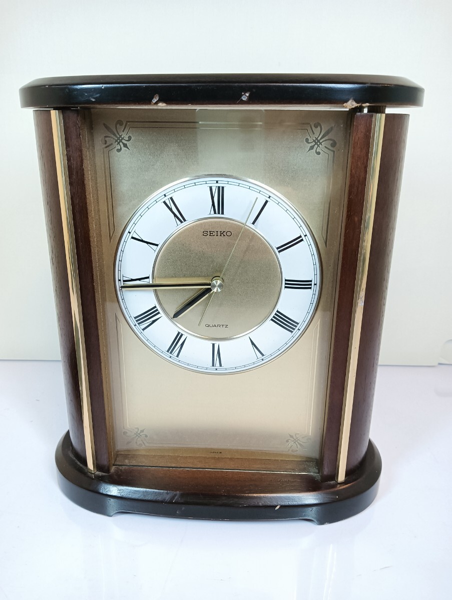 - SEIKO セイコー 置時計 クオーツ QZ 木製 ウッドフレーム テーブルクロック アナログ ローマ数字 レトロ アンティーク調 インテリア 80サイ