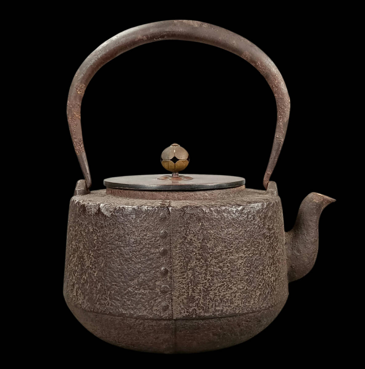- 【偲】時代鉄瓶 小振 銅蓋 茶道具 湯沸し 急須 骨董 鉄壺 茶器 古美術 高さ約20.5㌢ k-150 検:龍文堂 亀文堂