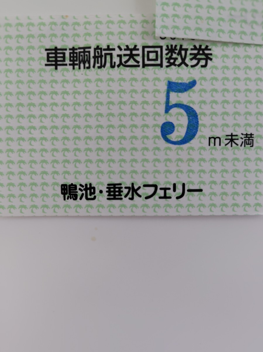 - 鹿児島 鴨池・垂水フェリー車輛航送回数券 5m未満 1枚。