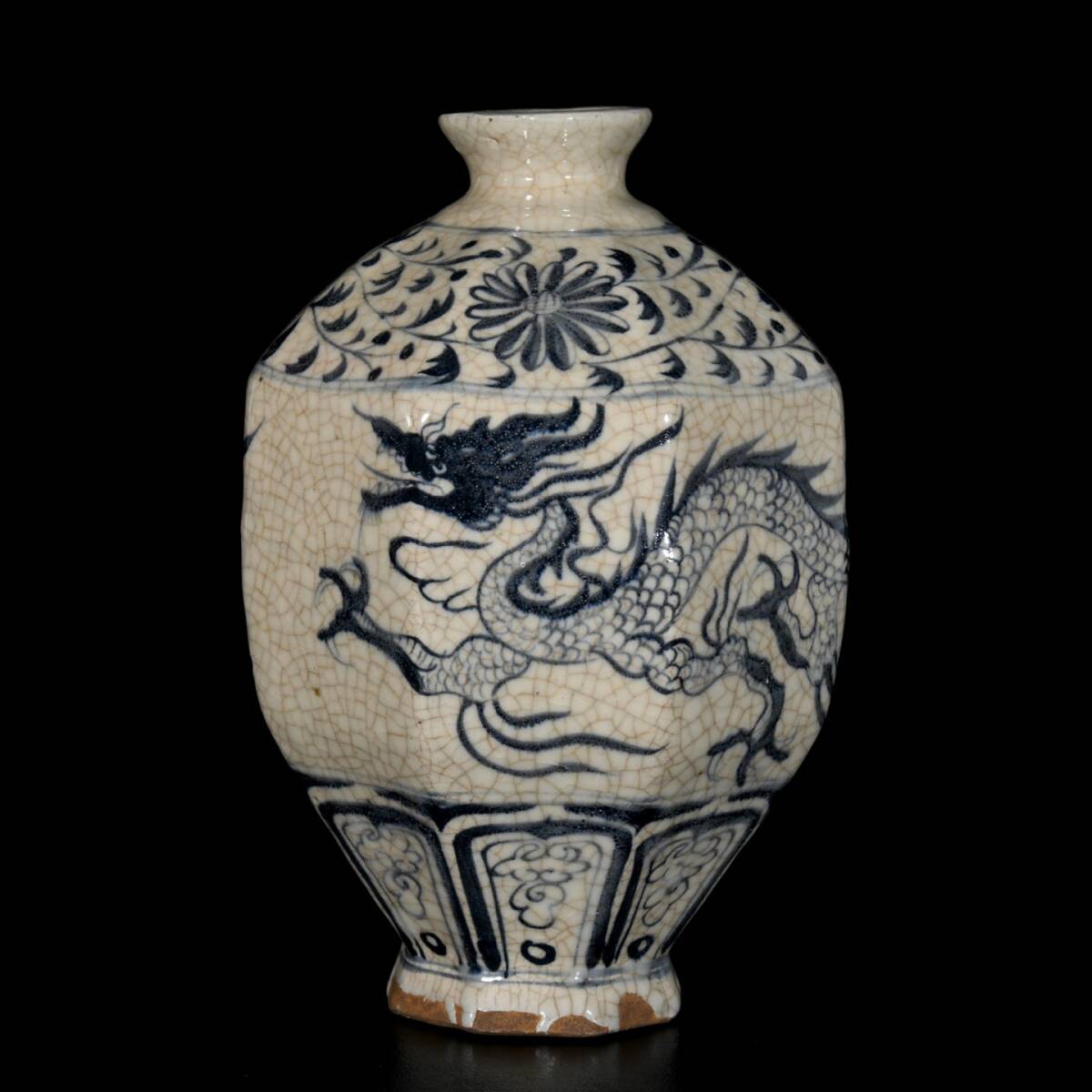 - yfa|0625 中国磁器 陶芸 磁器『元青花開片竜紋八方梅瓶』施釉陶 古代工芸品 陶芸 精美彫 置物 收藏品