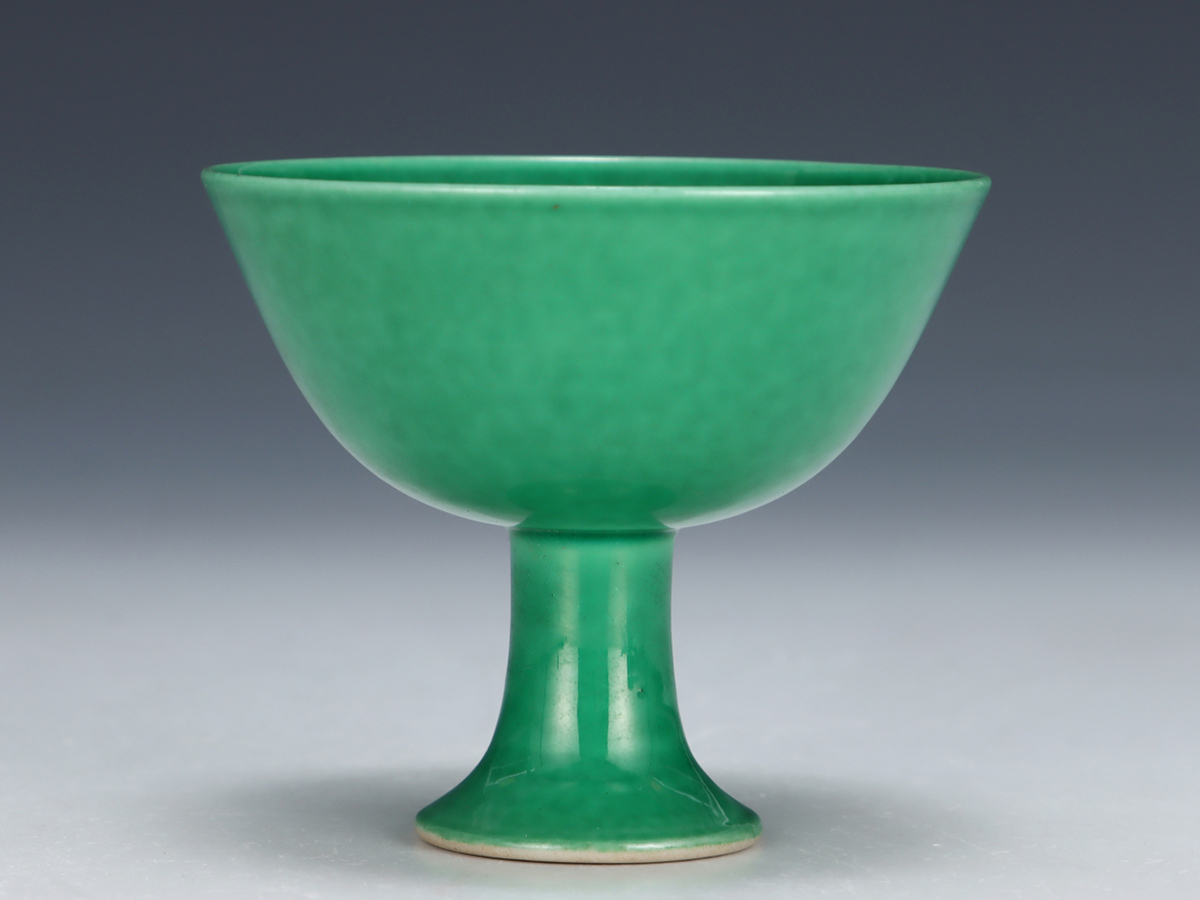 - ▽鴻▽明朝時代 陶磁器 成化年製 瓜皮緑釉高足杯 時代木箱付き 染付 時代物 中国古美術 骨董品