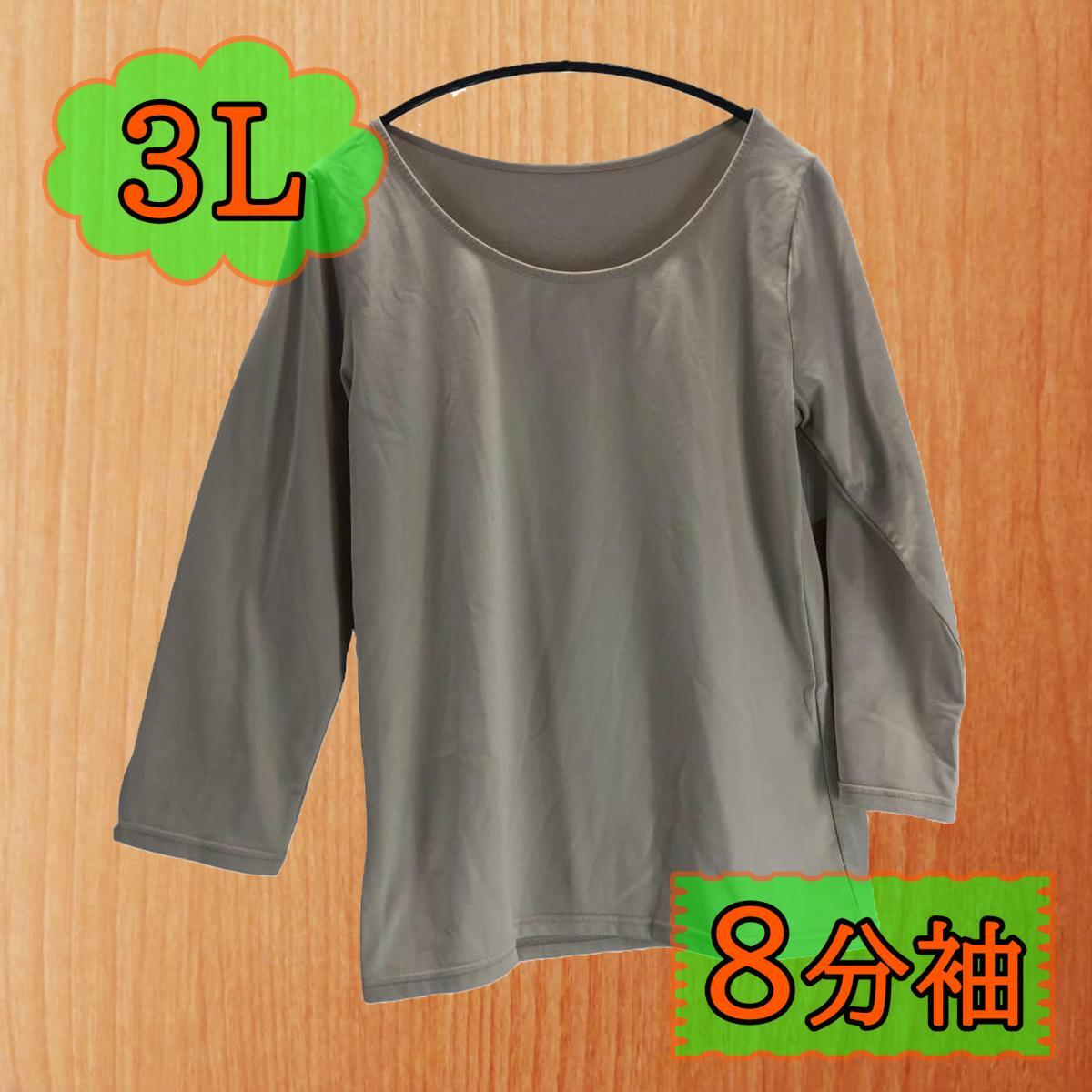- SI0252■ インナーシャツ 丸襟 8分袖丈 ストレッチ シンプル 無地 3Lサイズ ベージュ 送料 200円