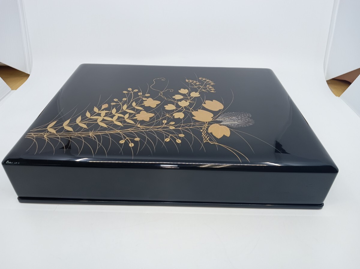- 【美品】漆器 文庫箱 金彩蒔絵 草花文様 黒塗 伝統工芸 漆芸