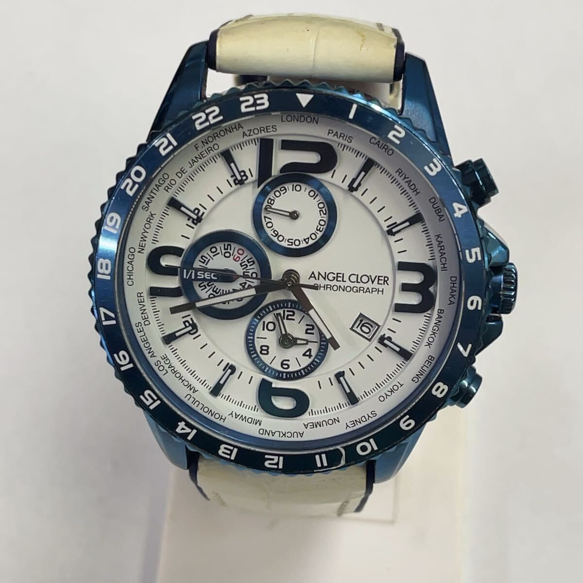 - ANGEL CLOVER エンジェルクローバー メンズ腕時計 クロノグラフ ホワイト文字盤 ブルー MO44 稼働品