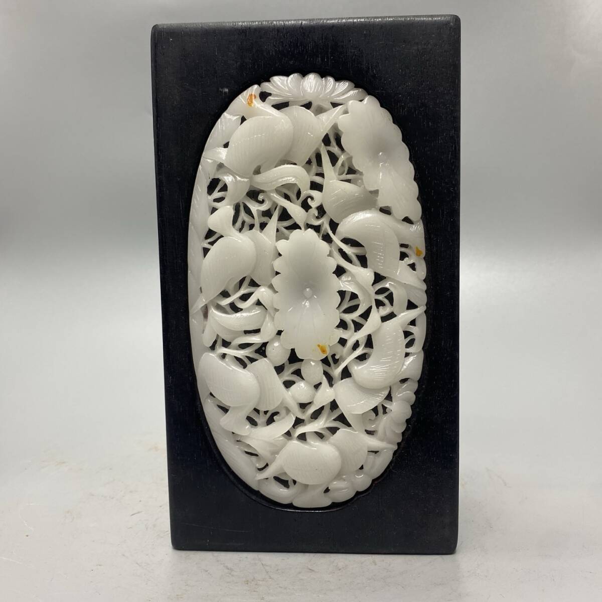 - ▽鴻▽黑檀木製 玉嵌 荷葉紋 首飾盒 収納盒 置物 賞物 古賞物 古董品 時代物 稀少珍品 中国古玩 中国古美術