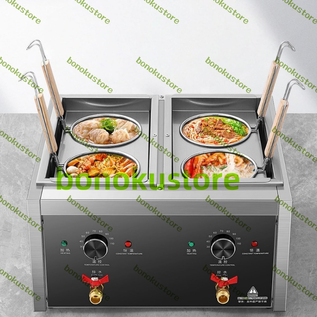 - 電気式ゆで麺器 単槽式4穴業務用 麺茹で器 ステンレス製 9L 大容量 保温機能あり ラーメン釜 ゆで麺機 卓上タイプ 30℃~110℃調節可能