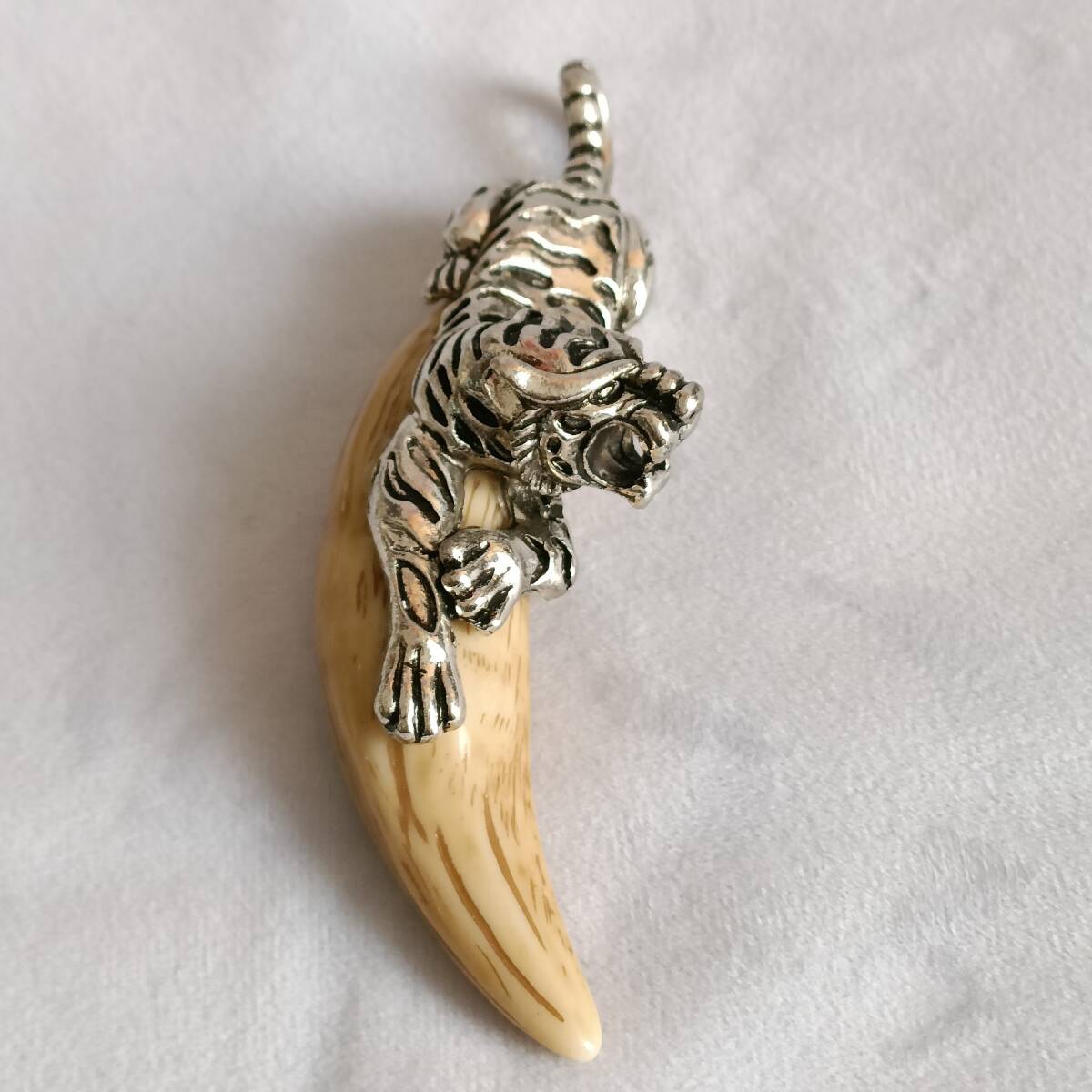 - 上質トラ牙の工芸品 美術品 樹脂製 浮き彫り ストラップ 置物 鑑賞 美品 コレクション 装飾 アクセサリー