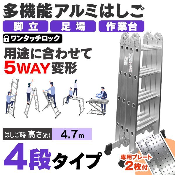 > 【専用プレート付き】多機能はしご 4.7m 耐荷重150kg 万能 アルミはしご 脚立 足場 折りたたみ スーパーラダー 洗車 カーポート 雪下ろし