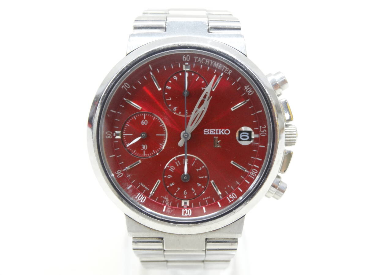 - #44665 セイコー ルキア LUKIA 7T92-0AA0 赤文字盤 現不動 クォーツ クロノ 中古 現状品