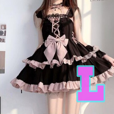 - 黒 ピンク フリル ティアード ジャンスカ ロリータ アイドル風 ジャンパースカート ワンピース カジュアル 病みかわ