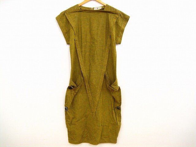 > HOROKO KOSHINO/ヒロココシノ リネン混 チュニック ストライプ レディース サイズ : 9 ワンピース 黄緑