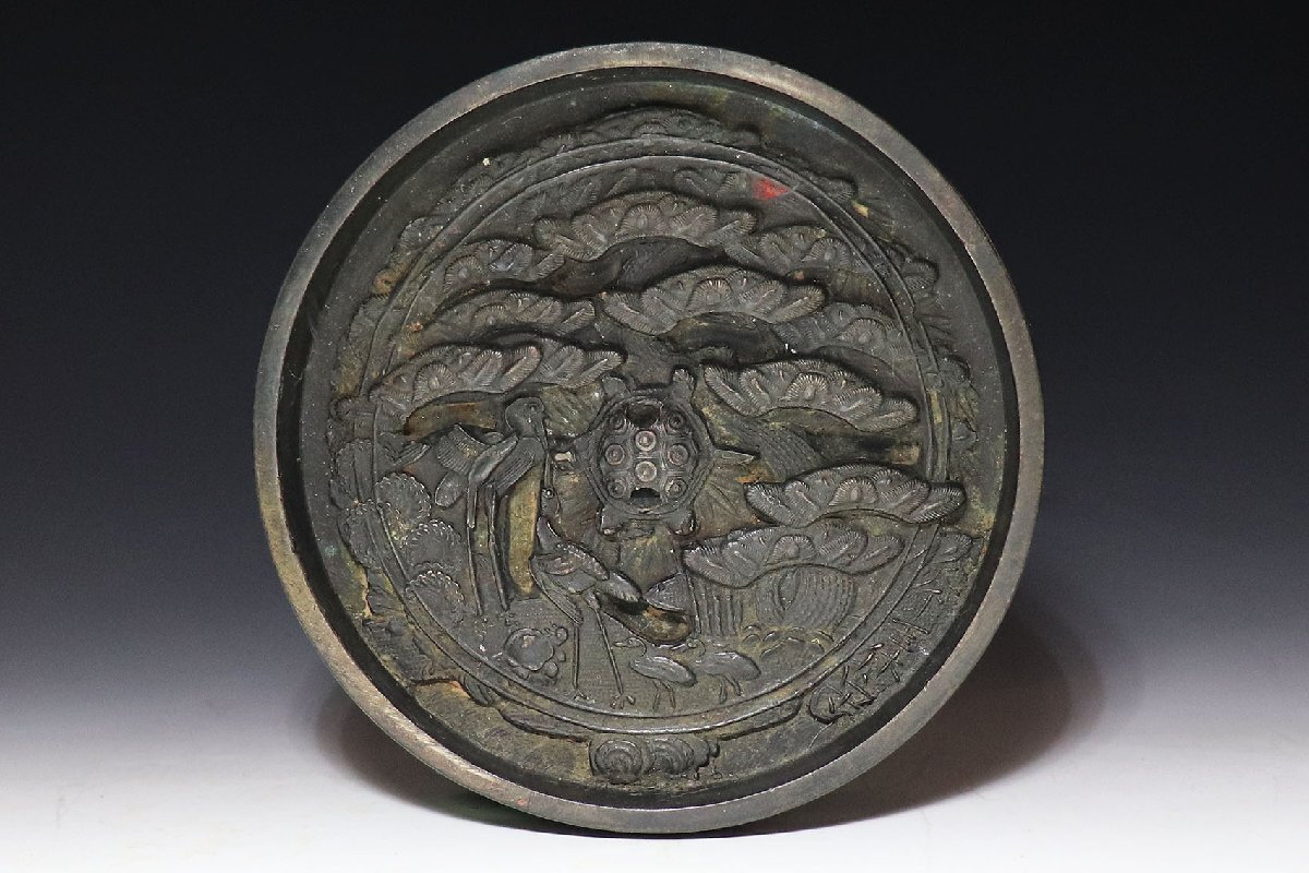- 【桃】仏教美術:古鏡松下双鶴図円鏡 江戸期 其の四