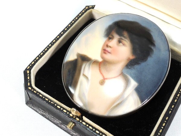 - 西洋美術/「ナポリの少年」/ブローチ/銀枠 エナメル画/細密画/ミニアチュール/陶板画/銀製/シルバー/KPM/アンティーク
