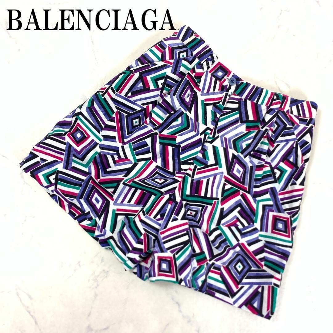 - LA7689 バレンシアガ BALENCIAGA カジュアル スポーツ 両サイドポケット有 コットン 総柄 ショートパンツ ブルー系 63