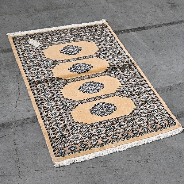 - 新品 未使用 パキスタン製 手織り ウール絨毯 ラグ ボハラ柄 ギュル文様 ハンドノット 羊毛 カーペット マット ホテル 応接室 P-124