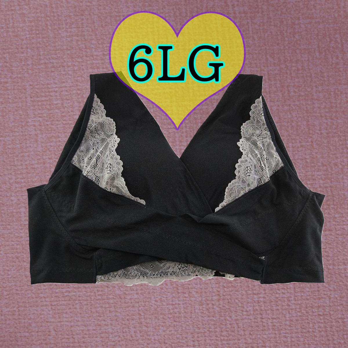 - SI7456◆ 新品 着たまま寝られる気持ちいい ブラジャー アンダーレース 外側サイドパネル カップ付 6LGサイズ 黒 ブラック 送料 350円