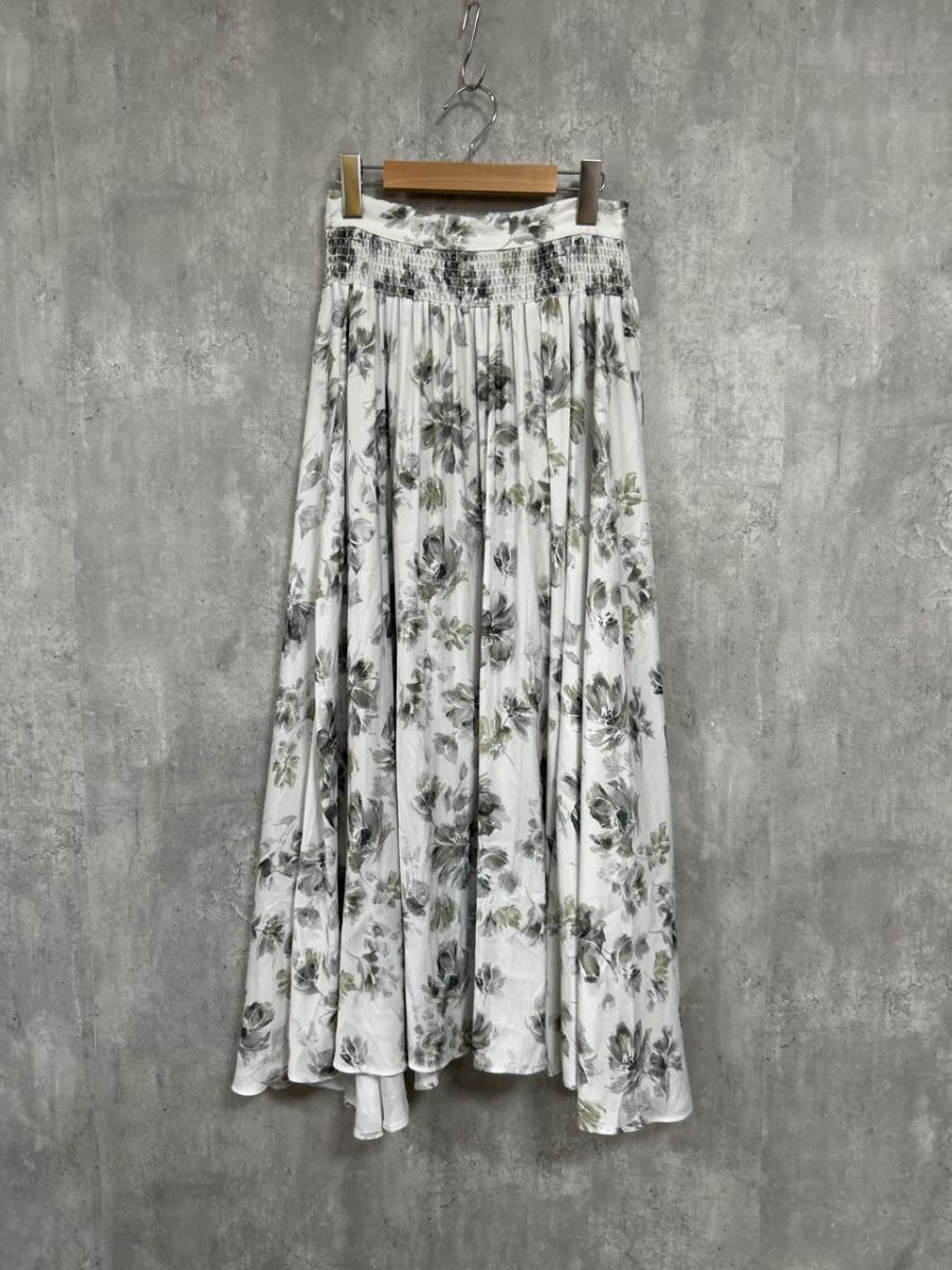 - anuans 花柄 ロング スカート sizeM/白 ■■ レディース レディース