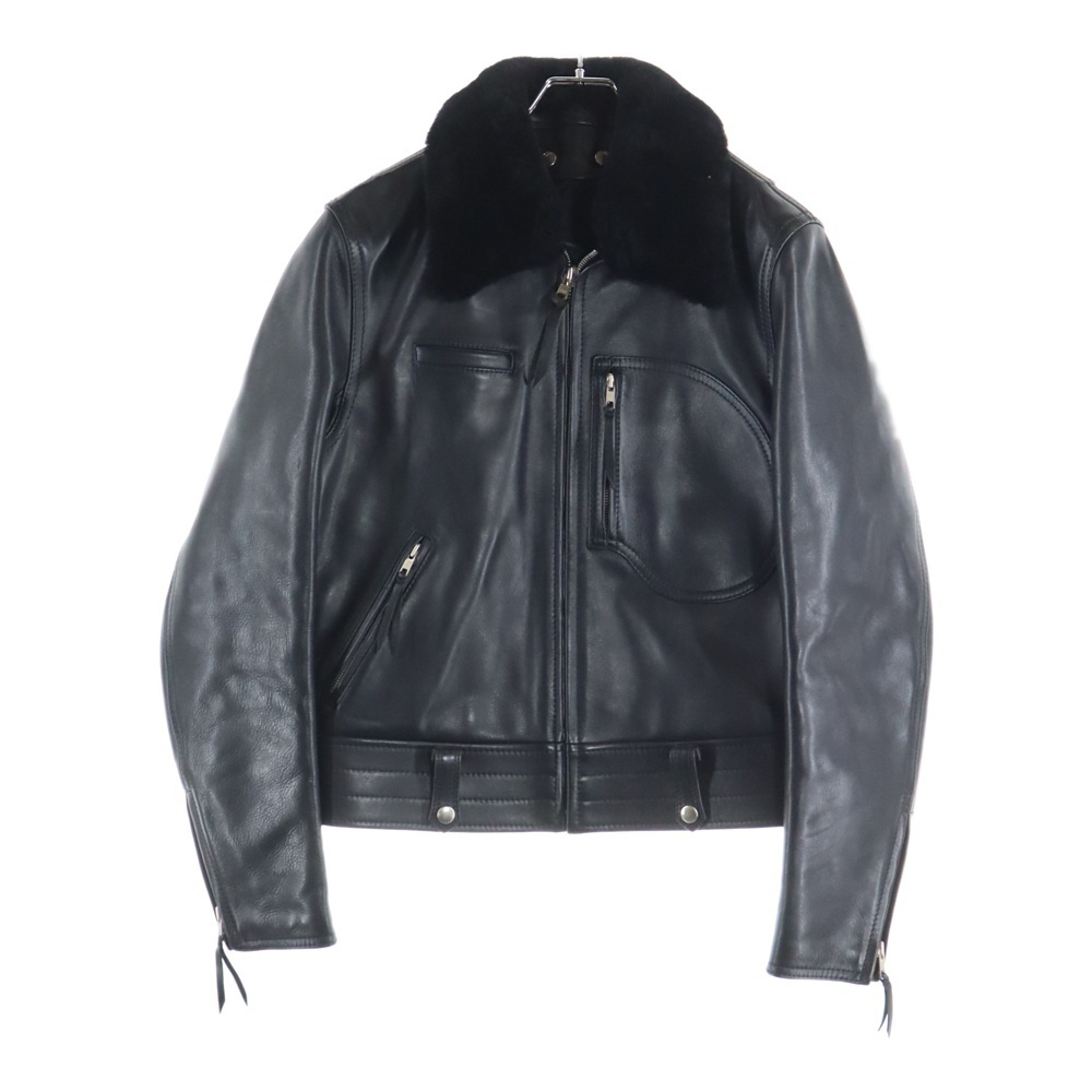 - BIG TWIN ビッグツイン MOUTON SINGLE-D RIDERS ムートン シングルライダース 裏地キルティング Dポケット レザー ジャケット ブラック