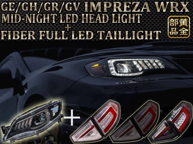 - ミッドナイトGPセット GH/GRB/GRF系 5D用 インプレッサ WRX STI ファイバーLEDテール【流れるウインカー】&ミッドナイトヘッドライト