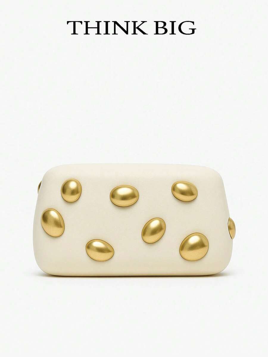 - バッグ レディース ドレスバッグ 高級ゴールドトーンのイブニングクラッチ、彫刻的なオーバル型メタルアクセント、取り外し可能なチェー