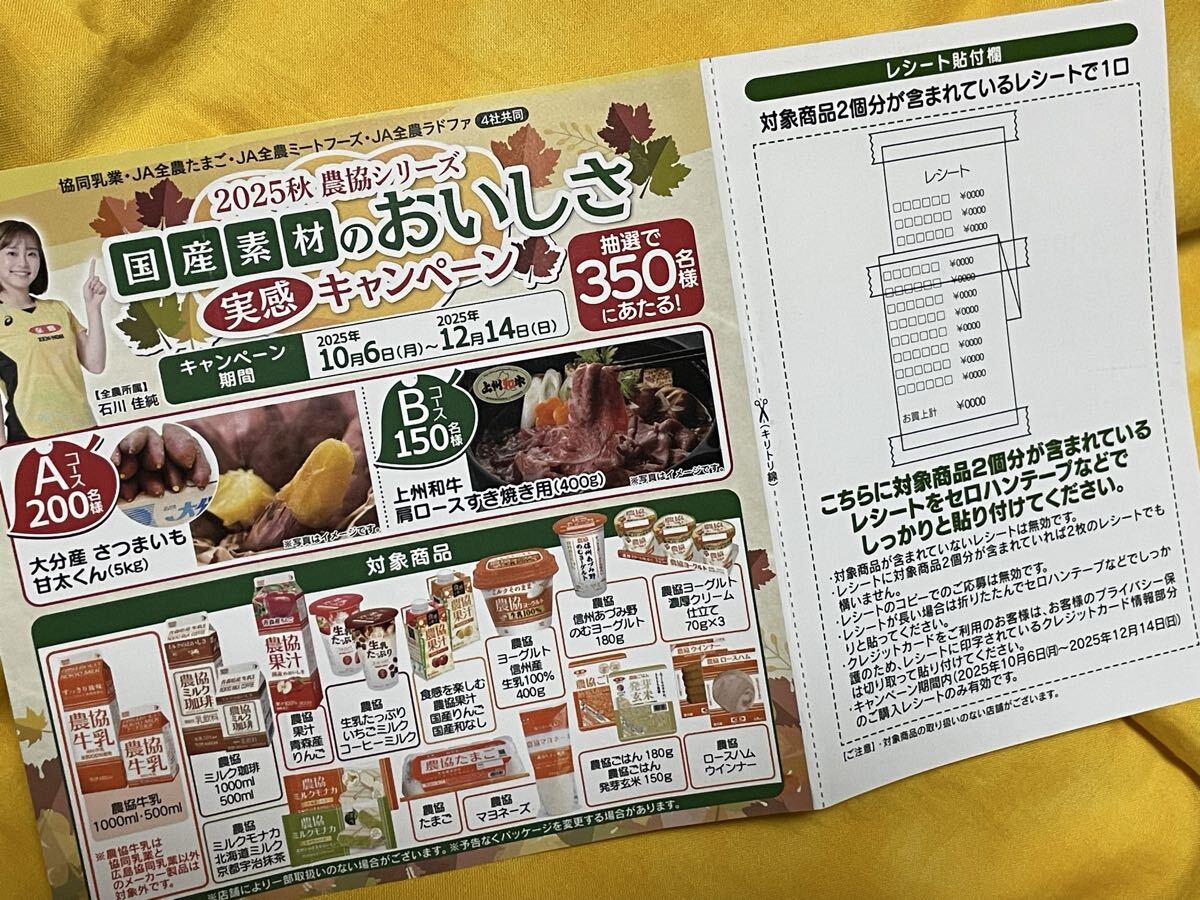 > 懸賞応募■2025秋 農協シリーズ 国産素材のおいしさ実感キャンペーン【レシート 1口分】上州和牛などが当たる!!■専用応募ハガキあり