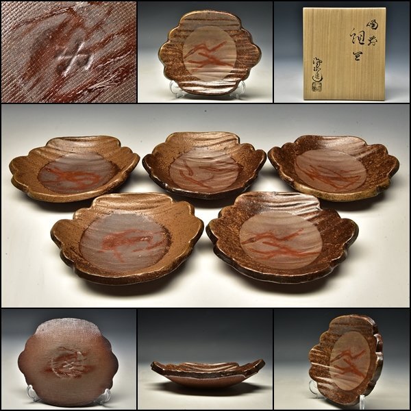 - SP6295 池内浄治 備前 組皿 五客 皿 向付 共箱