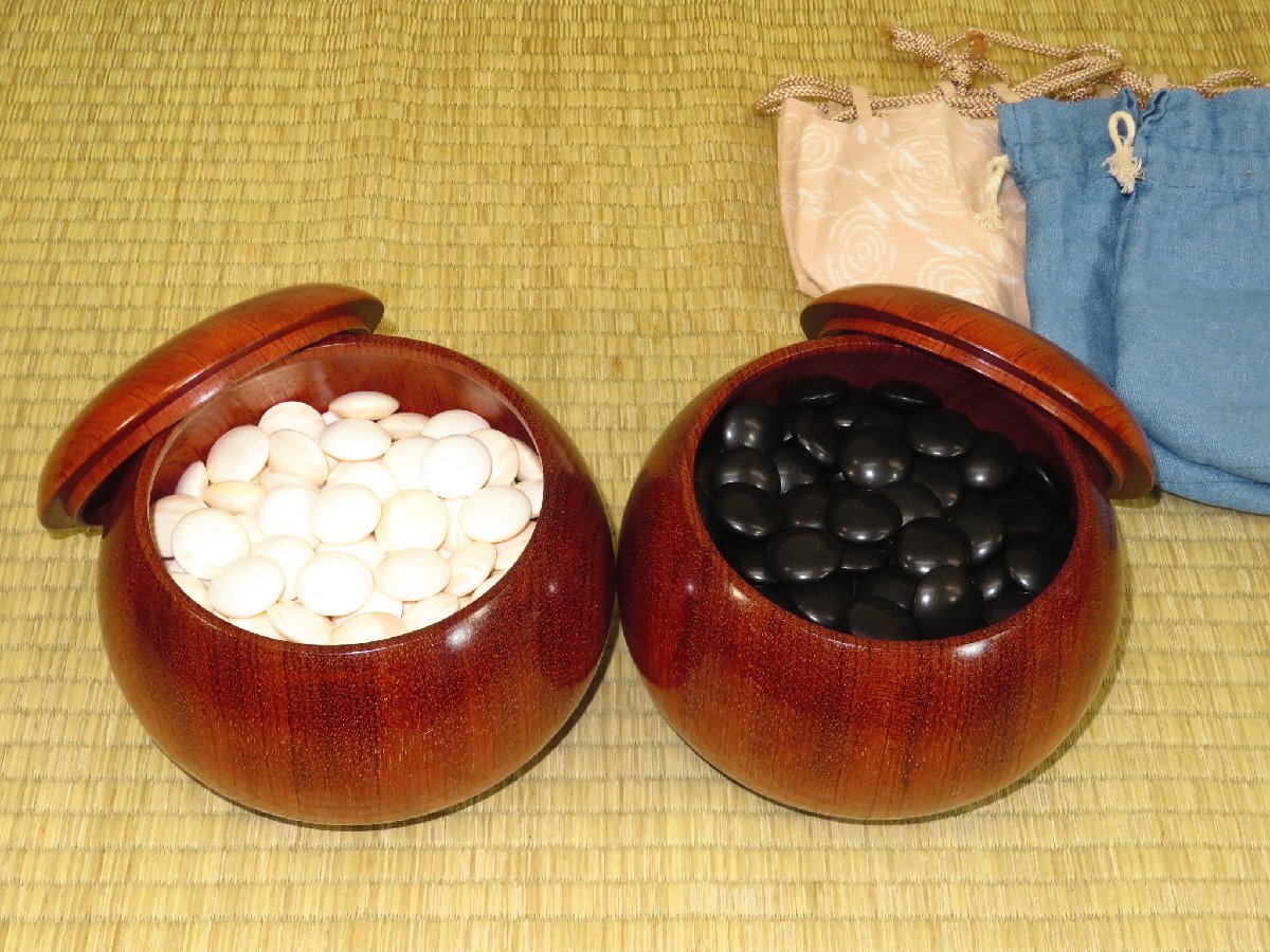 日本産本蛤碁石33号、花梨(かりん)碁笥付きです。