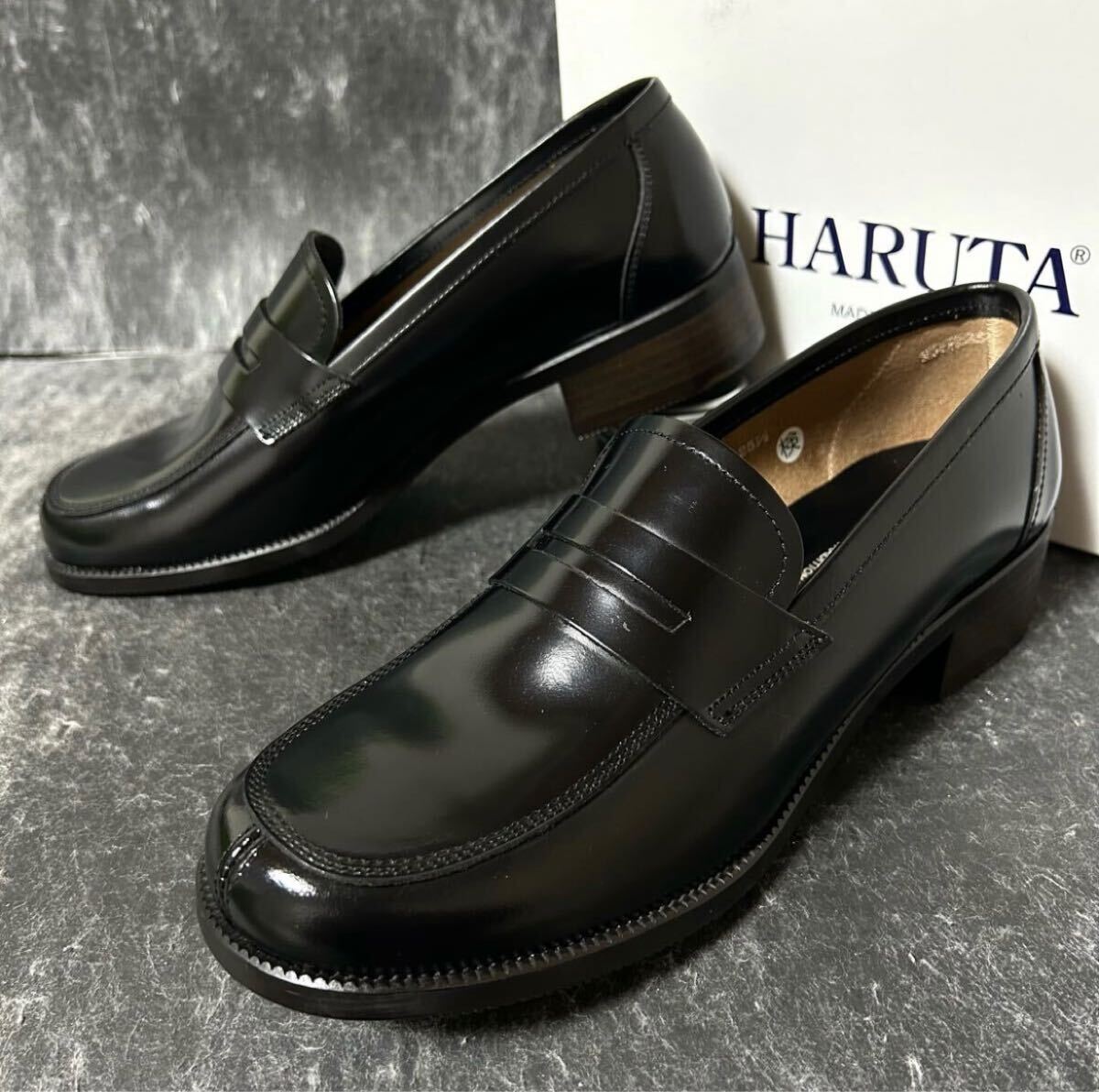 > 【未使用/大きいサイズ】¥10450- HARUTA ハルタ #545 コインローファー ブラック レディース size251/2 (ゆったり3E) *1A