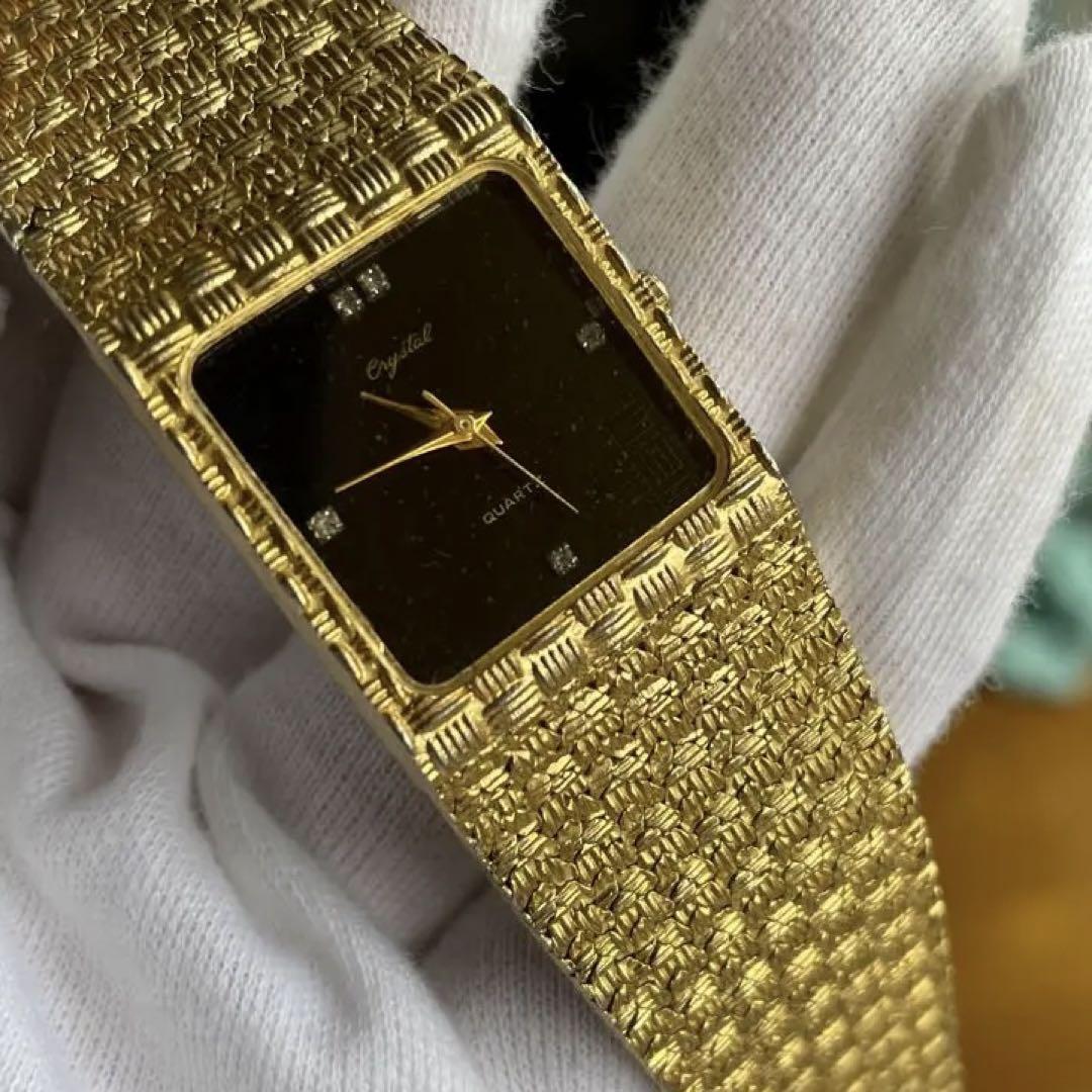 - Crystal ゴールド腕時計 【稼働品・電池交換済】