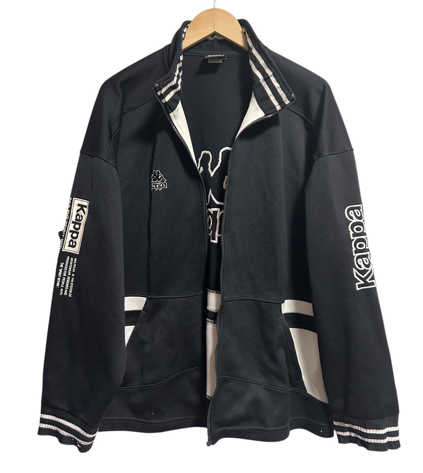 - 難有り 90's OLD★kappa カッパ ジャージ トラックジャケット 0 L 黒 ブラック 袖刺繍 オールド ビンテージ モノクロ