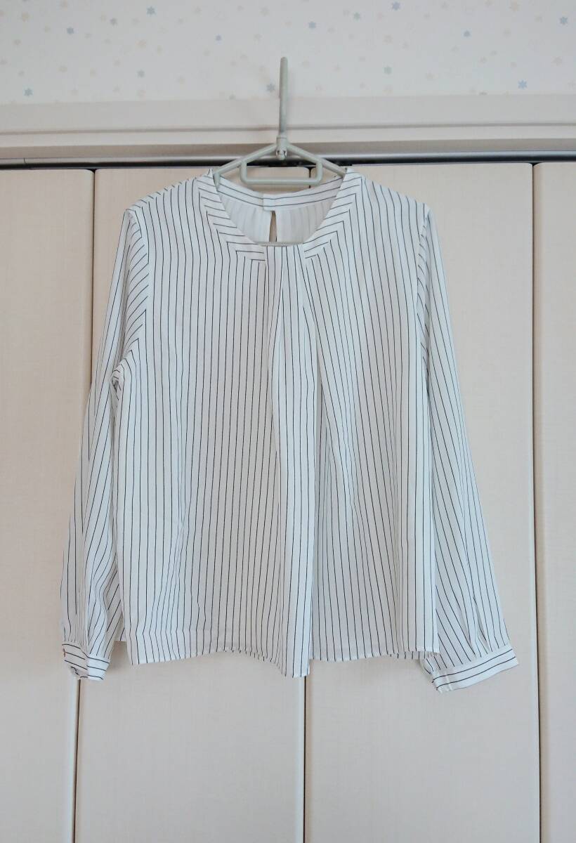 - グローバルワーク★ボウタイ風ブラウス・ホワイトストライプL★タグ付き