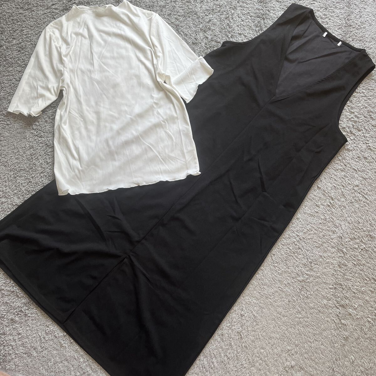 - 白リブメロウプルオーバー×黒VネックジャンスカロングワンピースM★ゆうパケット配送可能★新品1