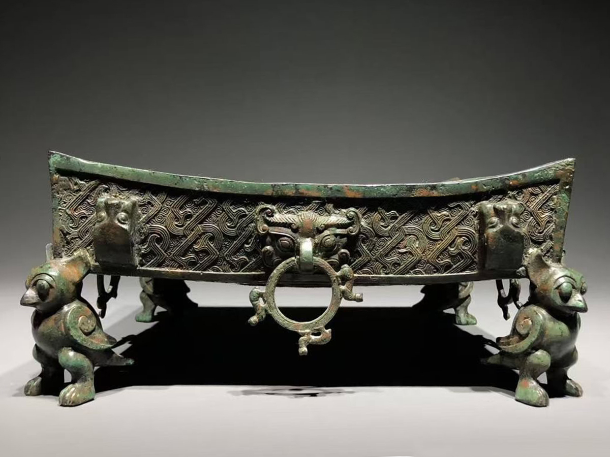 - ▽鴻▽戦国時代 青銅器 龍紋鳥足炉盆 時代物 中国古美術 骨董品