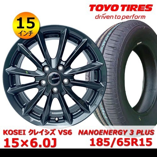 - 送料無料 新品 タイヤ& ホイール 15インチ【KOSEI クレイシズ VS6 15×6.0J +45 100x5】+【トーヨー NANOENERGY 3 PLUS 185/65R15】QHOT-7