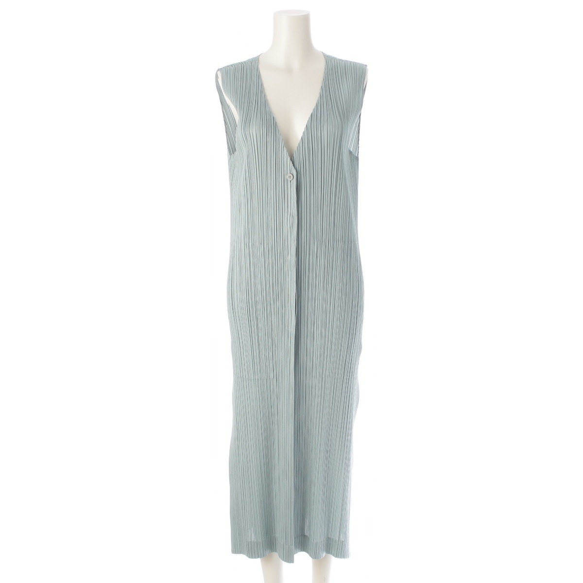 - プリーツプリーズ イッセイミヤケ ノースリーブ ワンピース PP81-JE204 セージ ミントグリーン系 4【中古】