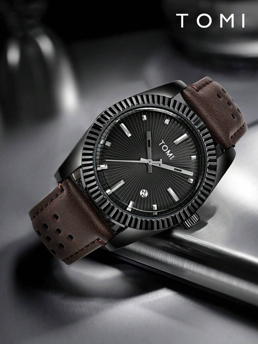 - 腕時計 メンズ クォーツ ボックス入り メンズファッション ミニマリスト ユニークギアデザイン レザーベルト クォーツ腕時計、日常