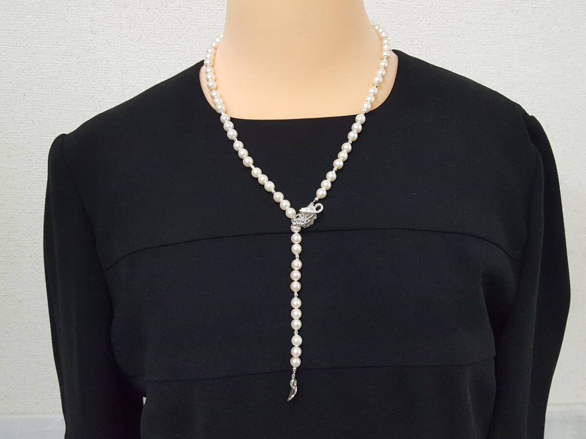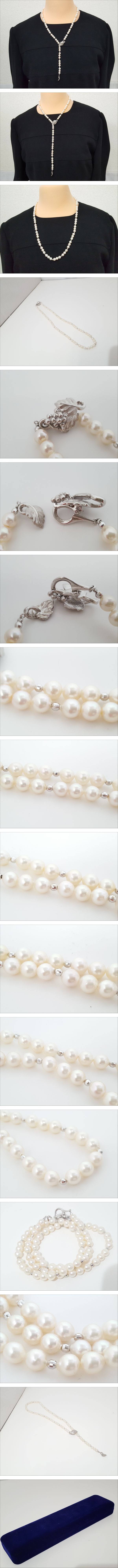 - 【美品】あこや本真珠 バックルクラスプ ミラーボール付き ネックレス/全長約62cm/Y字/チョーカー/3WAY/パール粒6.5mm/06KO101301