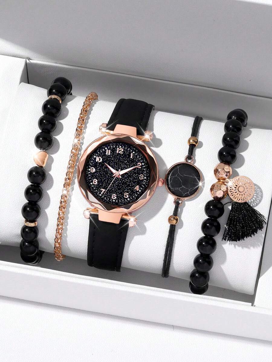 - 腕時計 レディース セット 5個セット シンプルでエレガントな女性用合金ウォッチ、合金ダイヤル アラビア数字スケール 星空模様、P