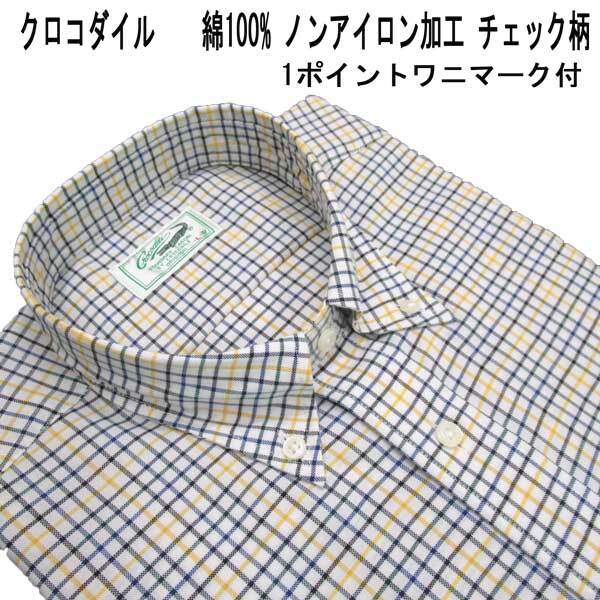 - クロコダイル BDシャツ 綿 1Pワニマーク ハウスチェック 白 M
