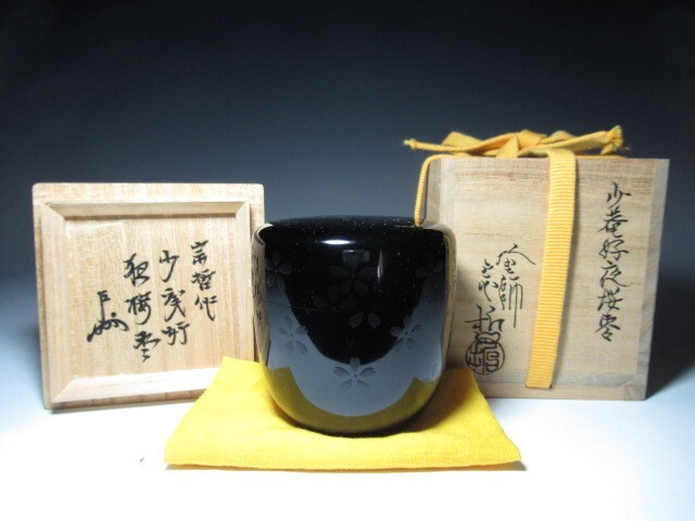 - 中村宗哲 小庵好 夜桜棗 表千家 十三代 即中斎花押!7183