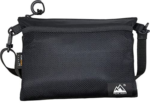 - 【改訂版】サコッシュ 小さめ 撥水 防水 超軽量 メンズ レディース 登山 トラベル ハイキング 旅行 黒 PEAKHUNT(ピー