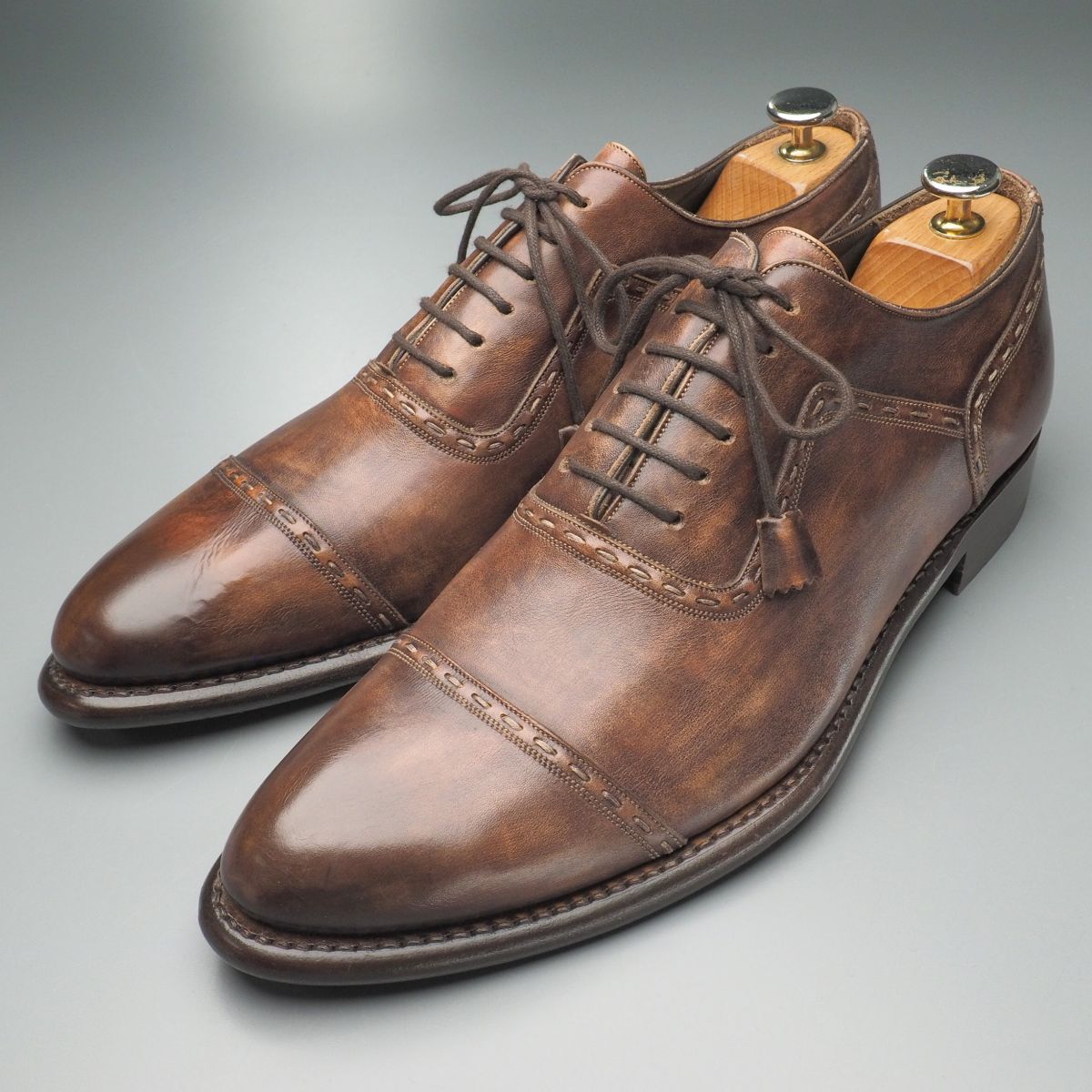 - W5448//イタリア製*ハリス/HARRIS*メンズ7.5/ストレートチップ/キャップトゥ/レザーシューズ/革靴/茶/ブラウン
