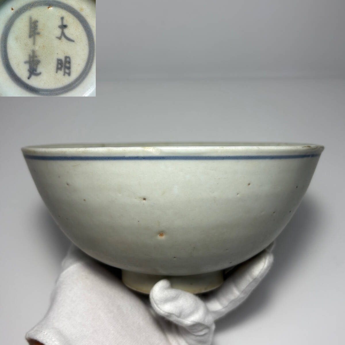 - 中国美術 大明年製 白釉 染付 茶碗 明代 時代物