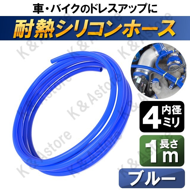 - 耐熱 シリコンホース 内径4mm 4ミリ バキュームホース ラジエターホース チューブ エンジンホース 汎用 車 バイク 外径9mm ブルー 全長1m
