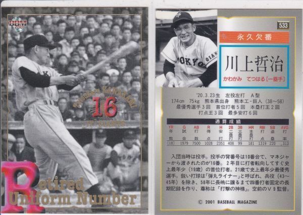 > ●2001BBM 【川上 哲治】 永久欠番 No.533:巨人 R9