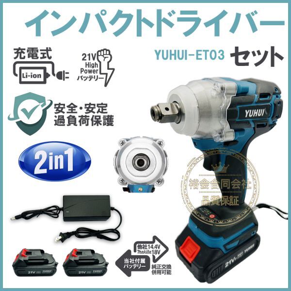 > ★送料無料・30日間保証付き★インパクトドライバー 1台2役 コードレス 充電式 ブラシレスモーター搭載 バッテリー2個付き