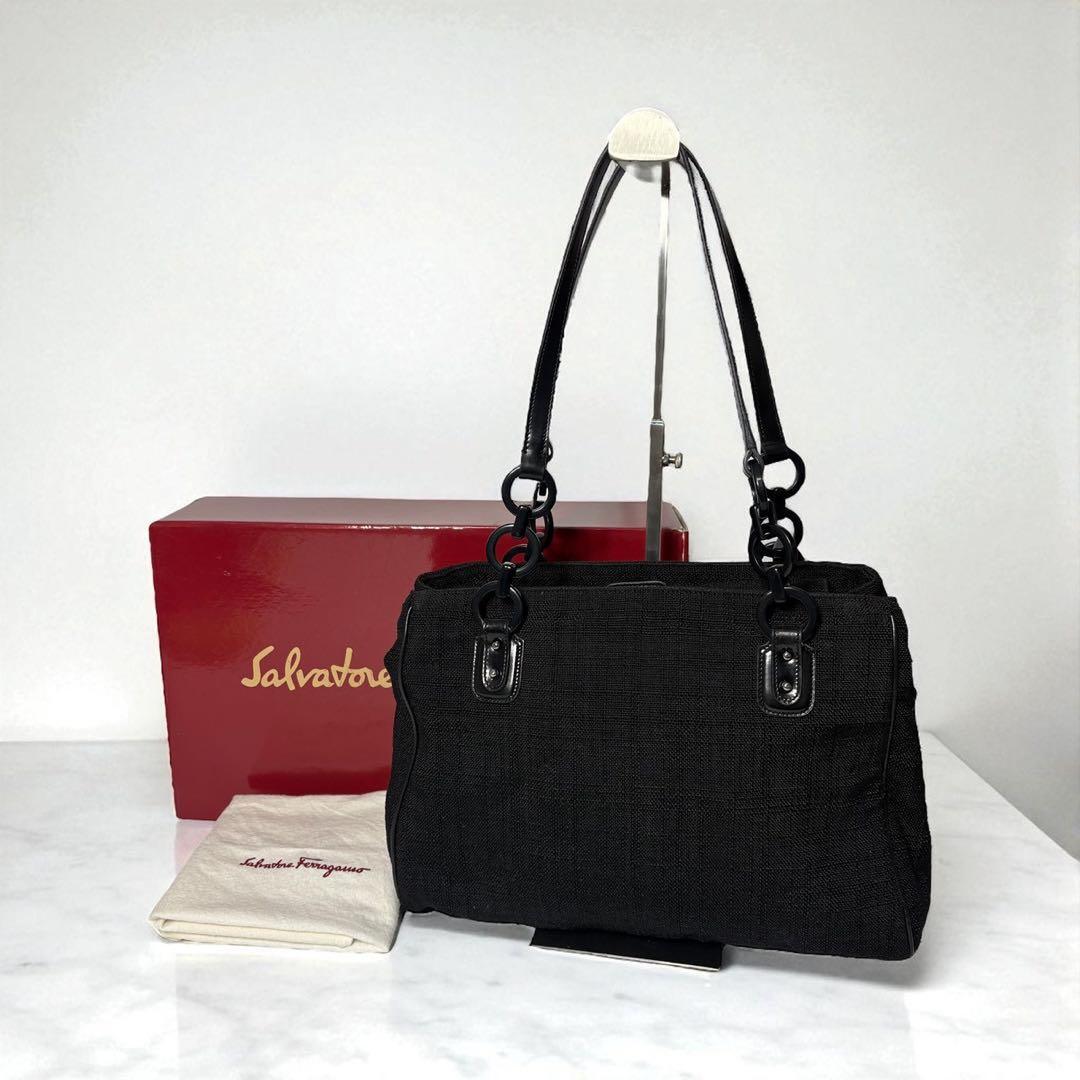 - サルヴァトーレフェラガモ キャンバストートバッグ ブラック 肩掛け可能
